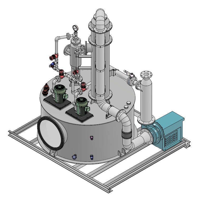 In winter of 2008, an AAT Apollo 250 scrubber was installed due to its ability to handle the high SO2 concentration of 1% by volume (10,000 ppmv) and very high flow turn-down. The Apollo scrubber consists of an ejector-venturi and packed column installed on a common recycle tank. To facilitate absorption of the practically insoluble SO2, Sodium Hydroxide (NaOH) is used. The ejector-venturi is the ‘peak shaver’, using a high liquid-to-gas ratio, while the packed column polishes the Nitrogen to